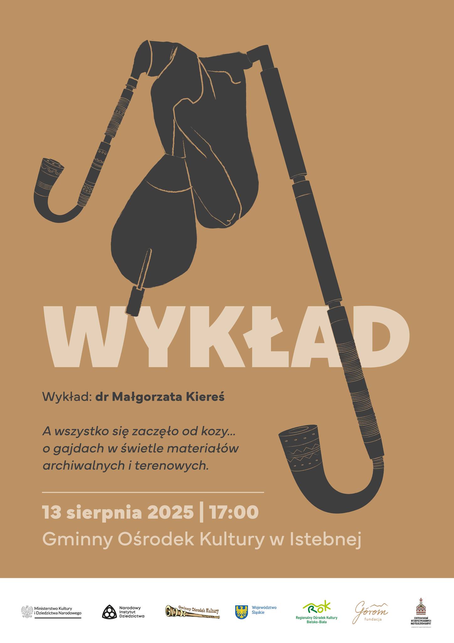 Wykład poświęcony będzie gajdom beskidzkim, tradycyjnemu instrumentowi pasterskiemu, który został wpisany na Krajową listę niematerialnego dziedzictwa kulturowego. Spotkanie poprowadzi dr Małgorzata Kiereś* – etnografka, badaczka kultury górali beskidzkich oraz autorka licznych publikacji poświęconych dziedzictwu regionu.