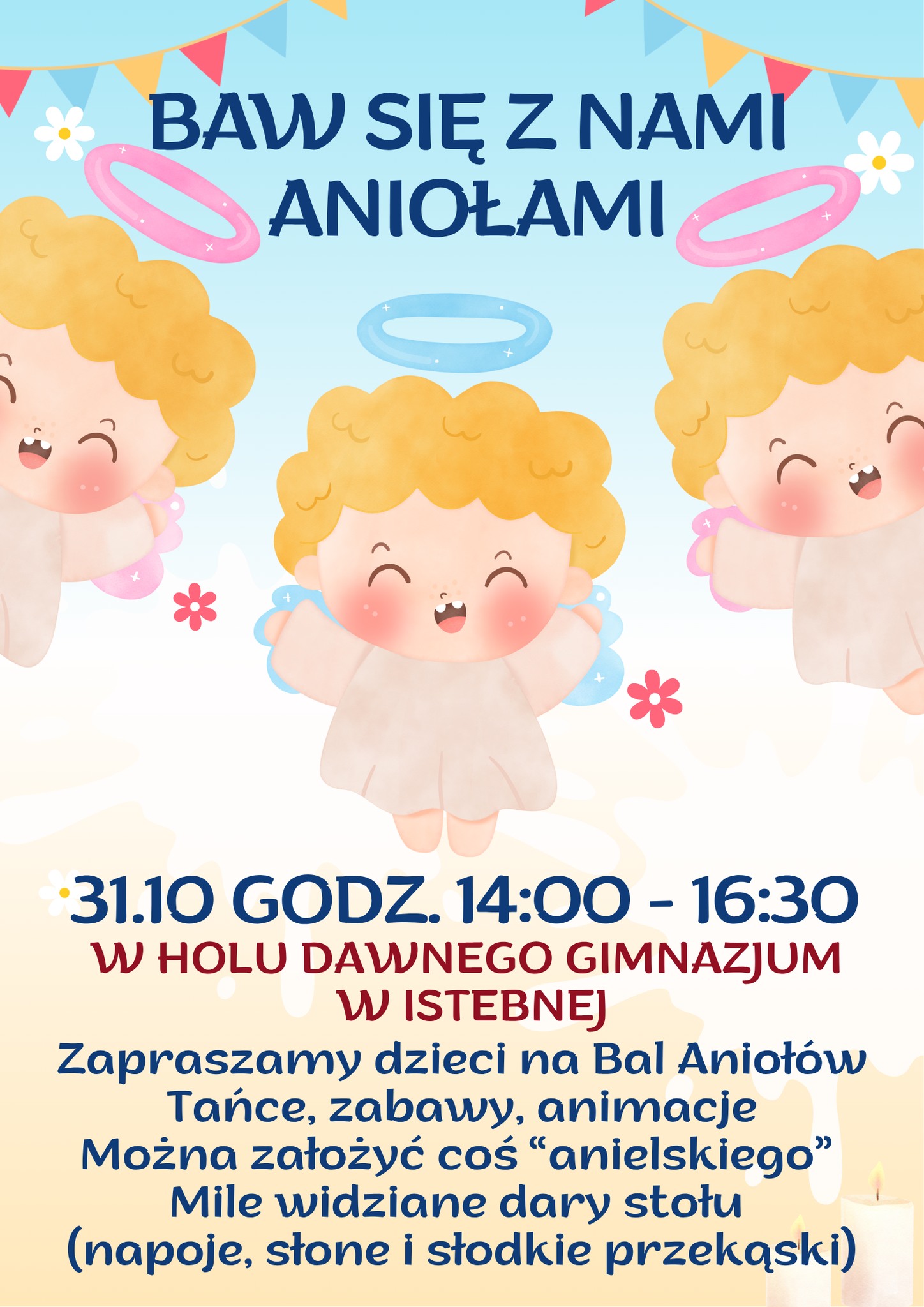 Przed nami pełna radości i uśmiechu zabawa "Baw się z nami Aniołami" w Holu ZSP Istebna Tartak