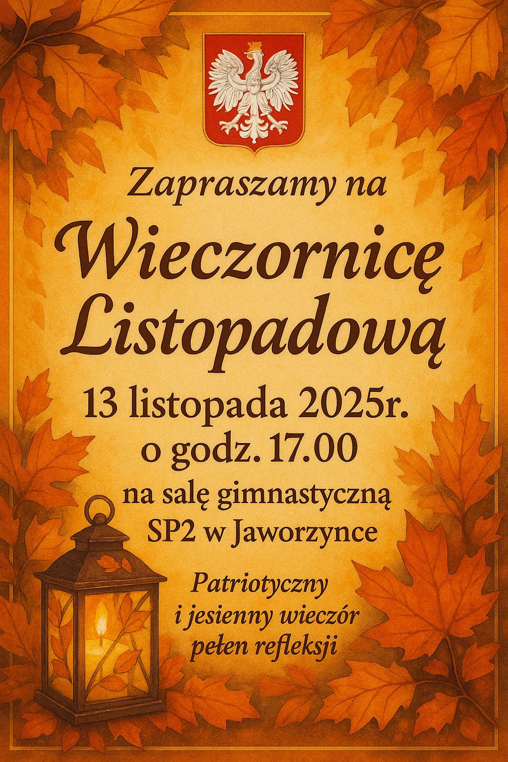 Szkoła Podstawowa nr 2 w Jaworzynce Zapasiekach zaprasza na niepodległościowe, patriotyczne spotkanie przy blasku świec.