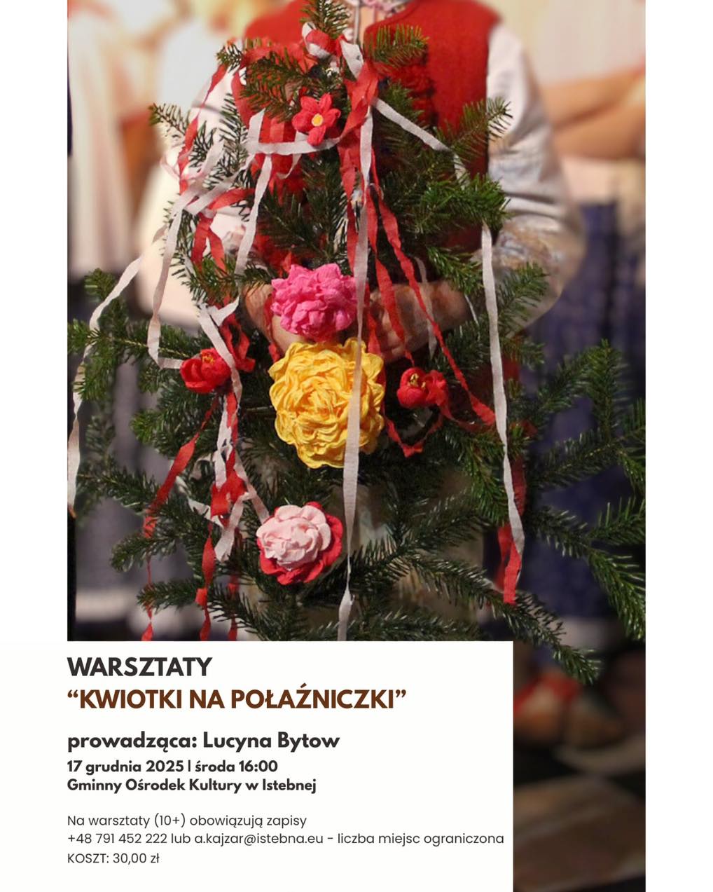 Serdecznie zapraszamy wszystkie dzieci wraz z rodzicami, dziadkami i całymi rodzinami na wyjątkowe, pełne magii świąteczne warsztaty „Kwiotki na Połaźniczki”!