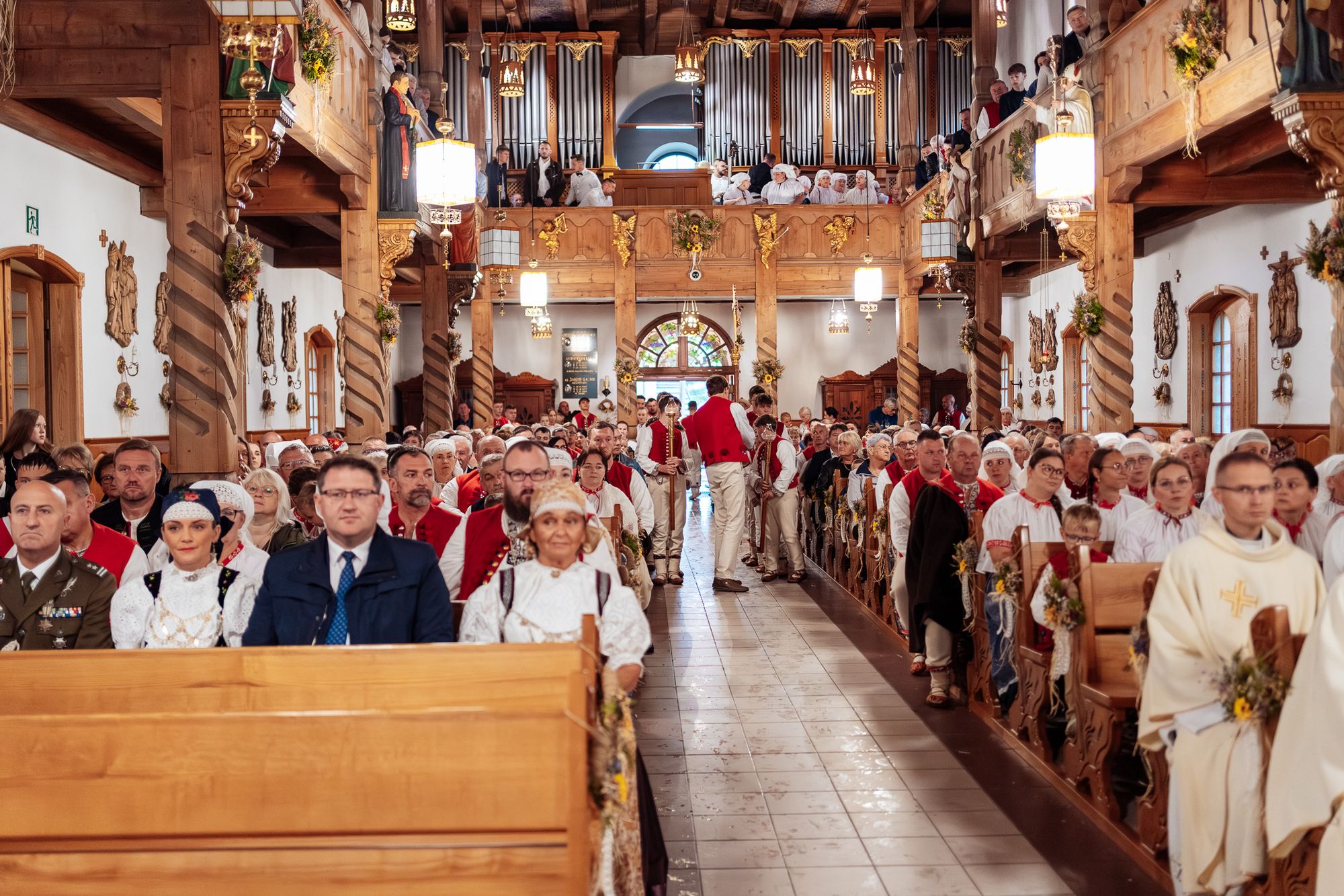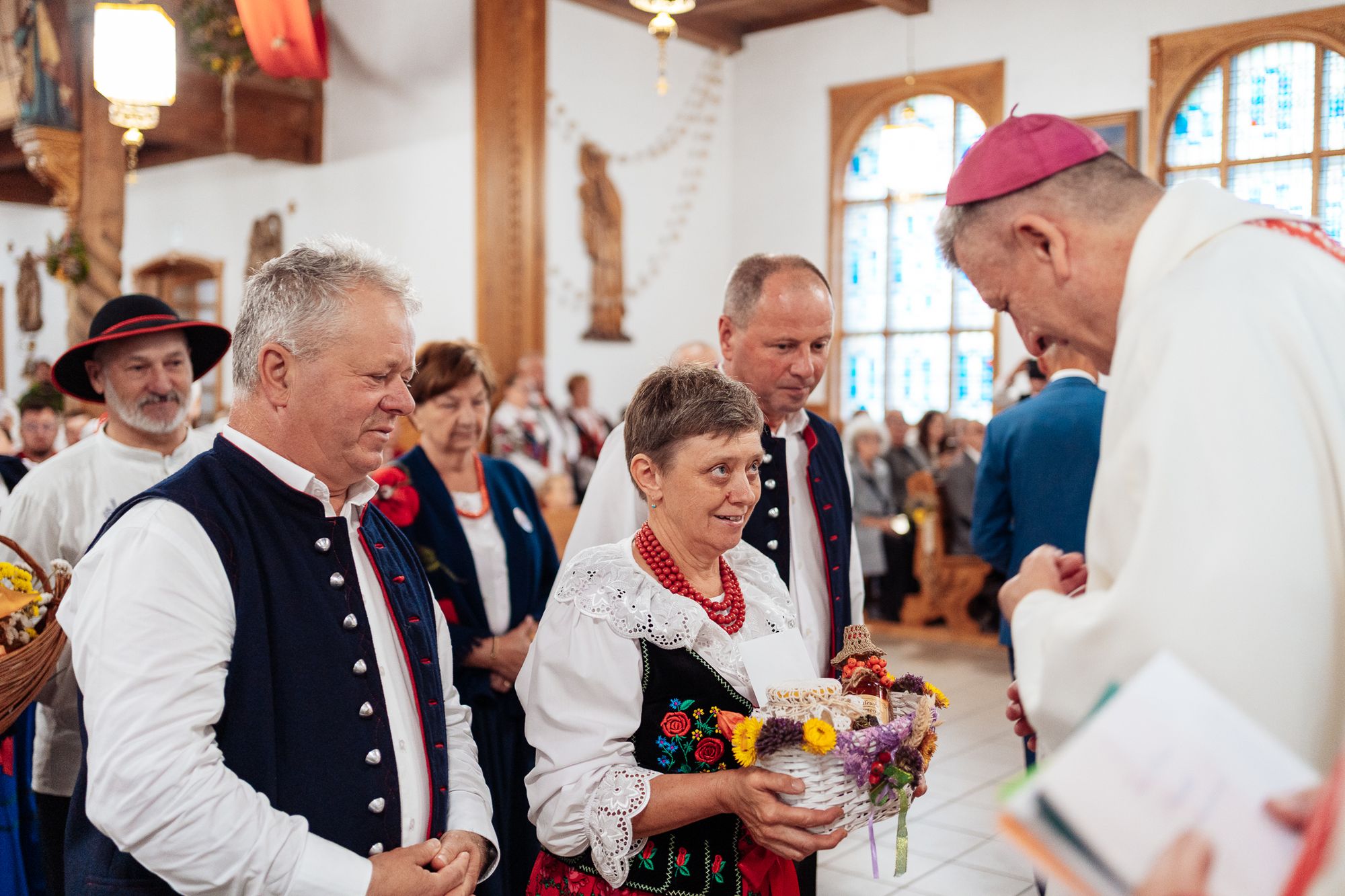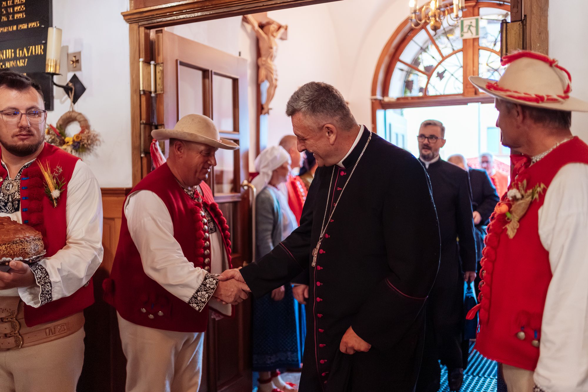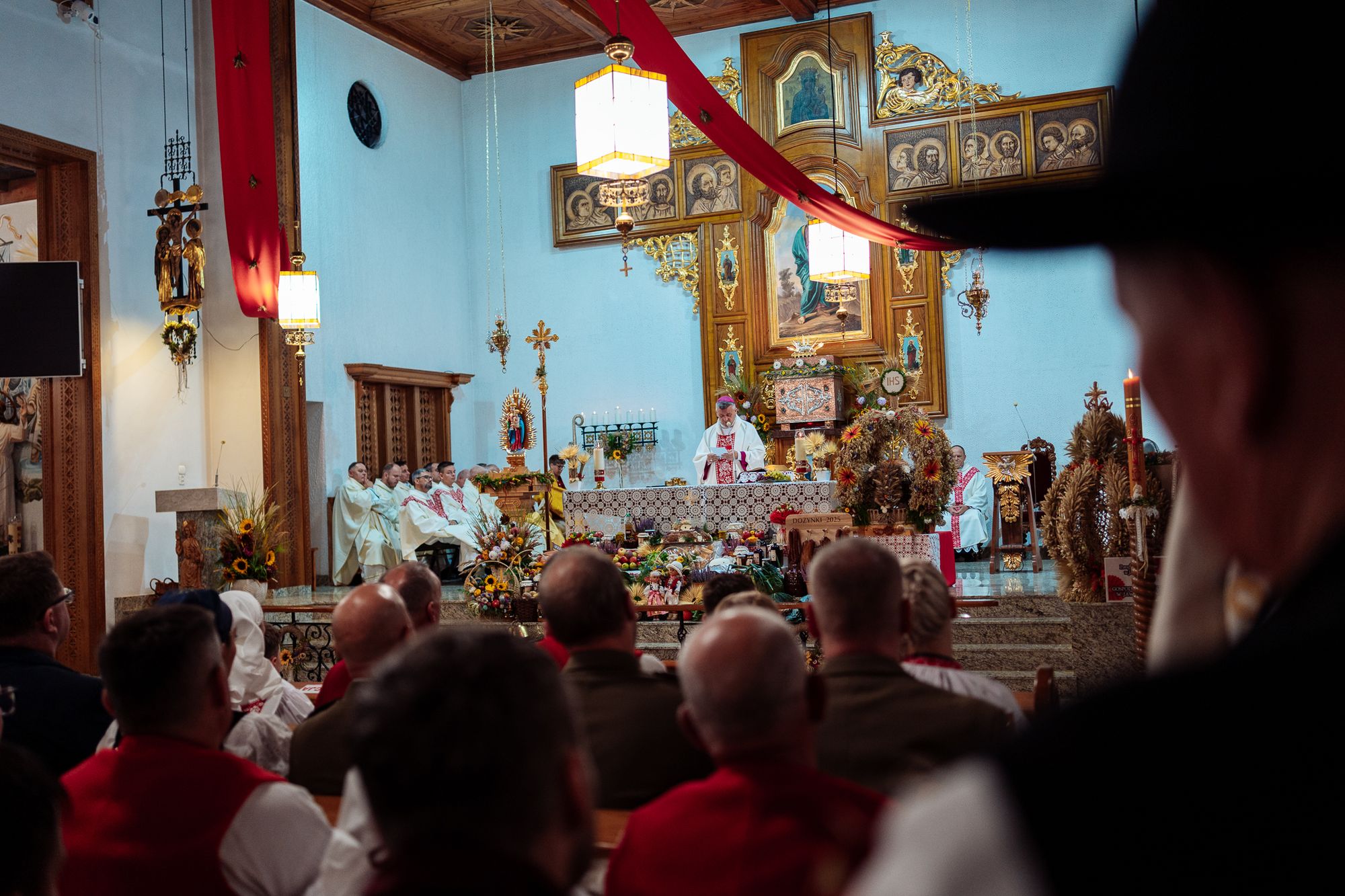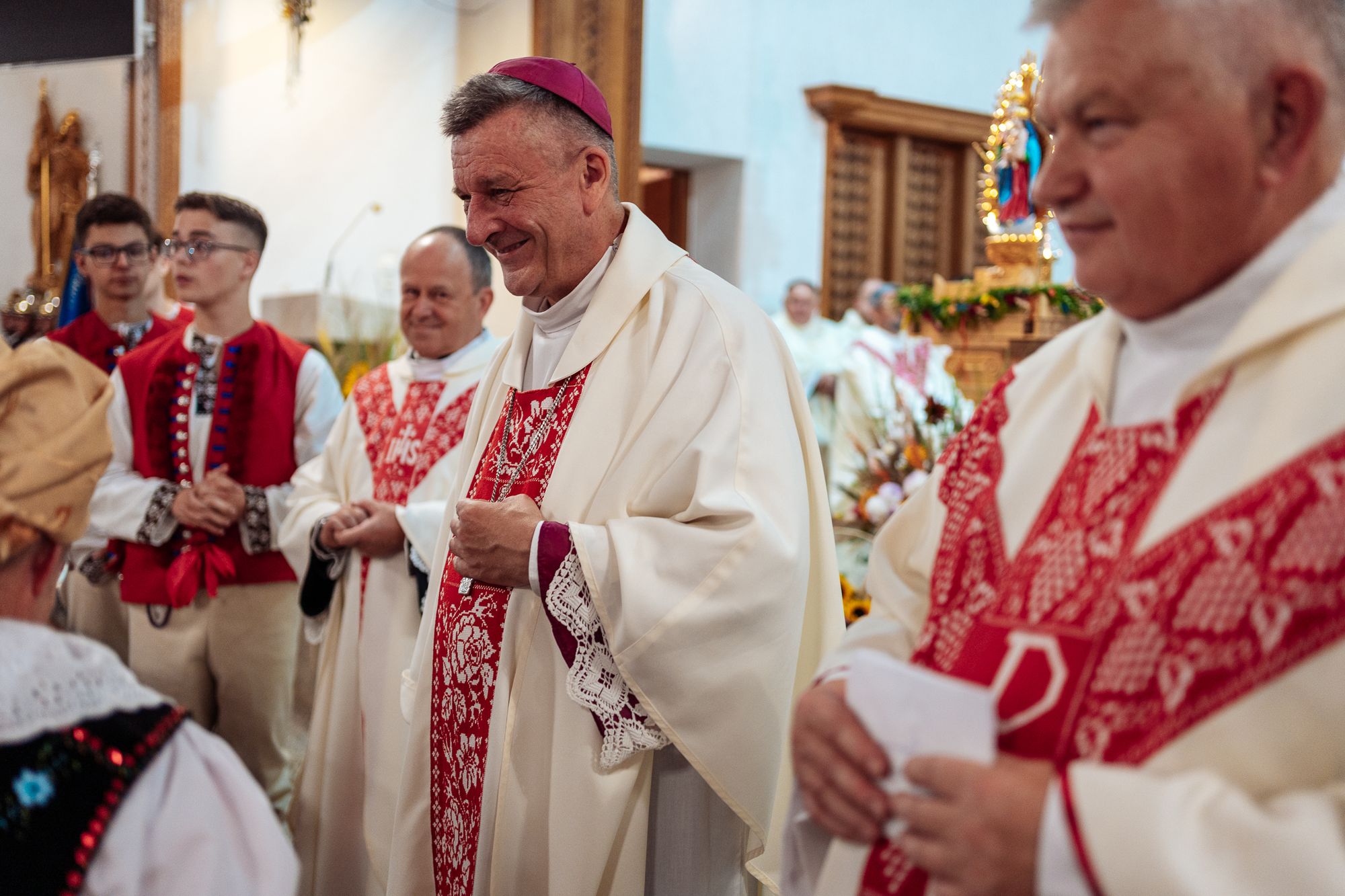 Fotoreportaż przedstawiający uroczystą Eucharystię pod przewodnictwem bp. Romana Pindla w Kościele św. Bartłomieja w Koniakowie