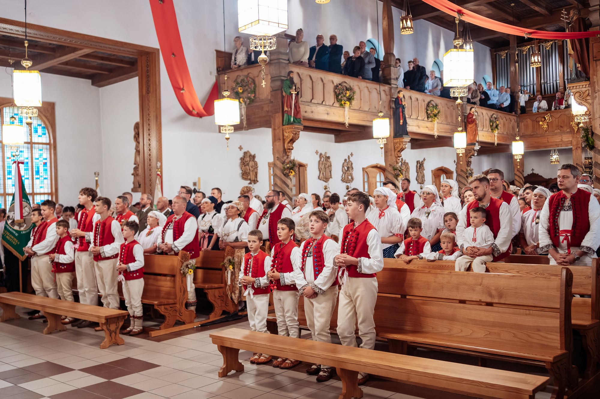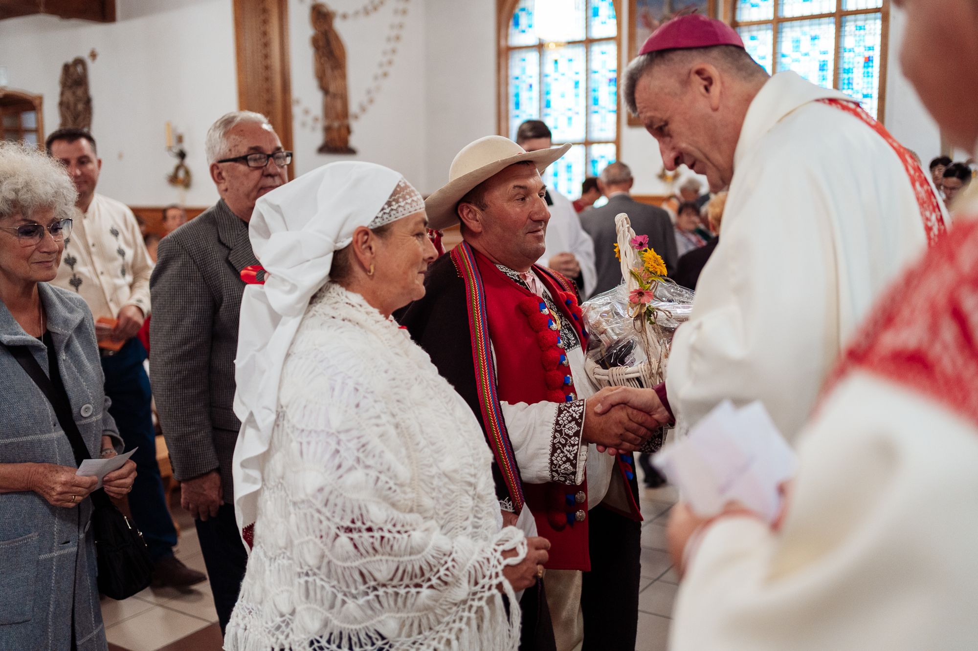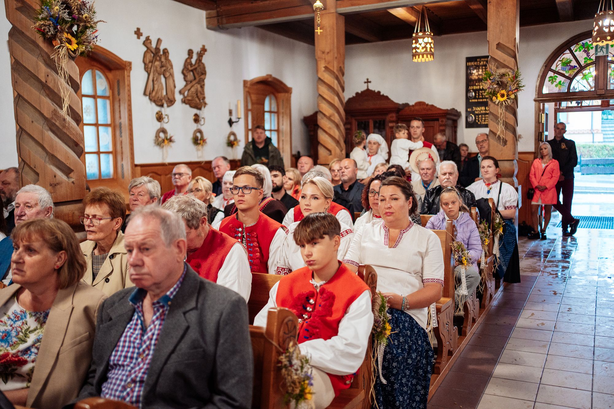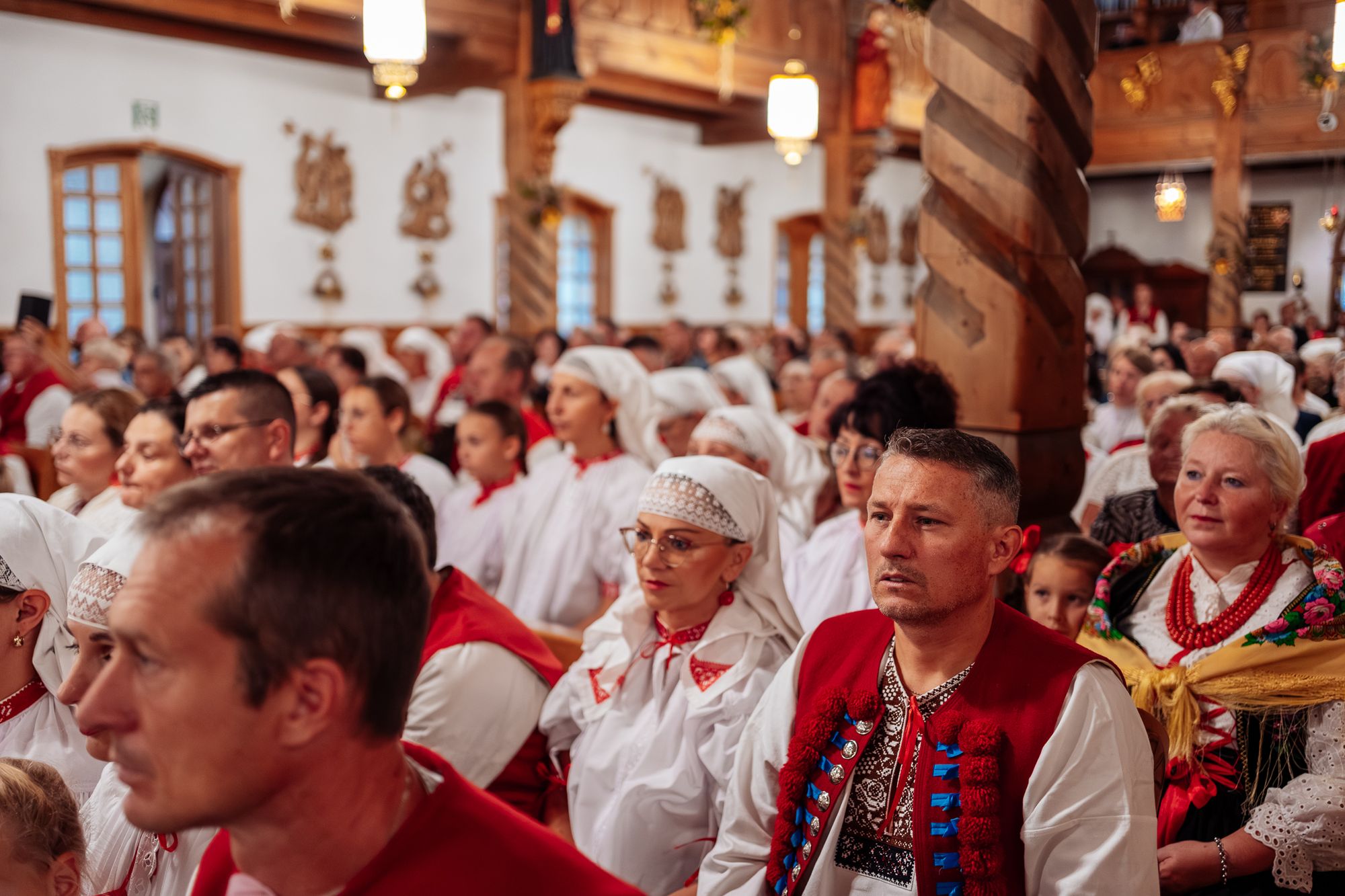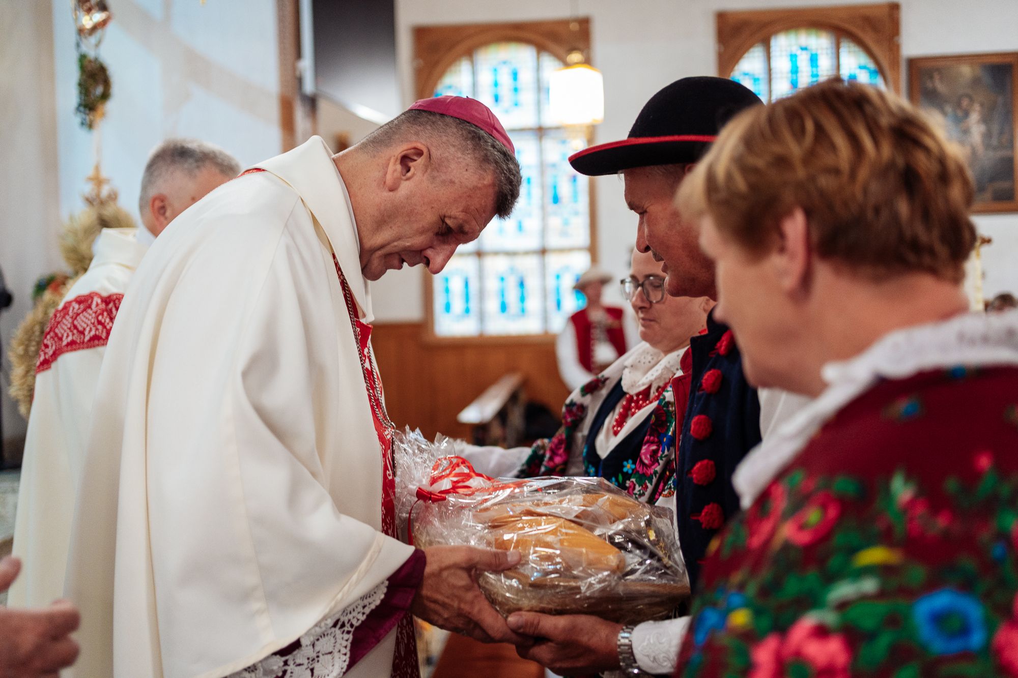 Fotoreportaż przedstawiający uroczystą Eucharystię pod przewodnictwem bp. Romana Pindla w Kościele św. Bartłomieja w Koniakowie