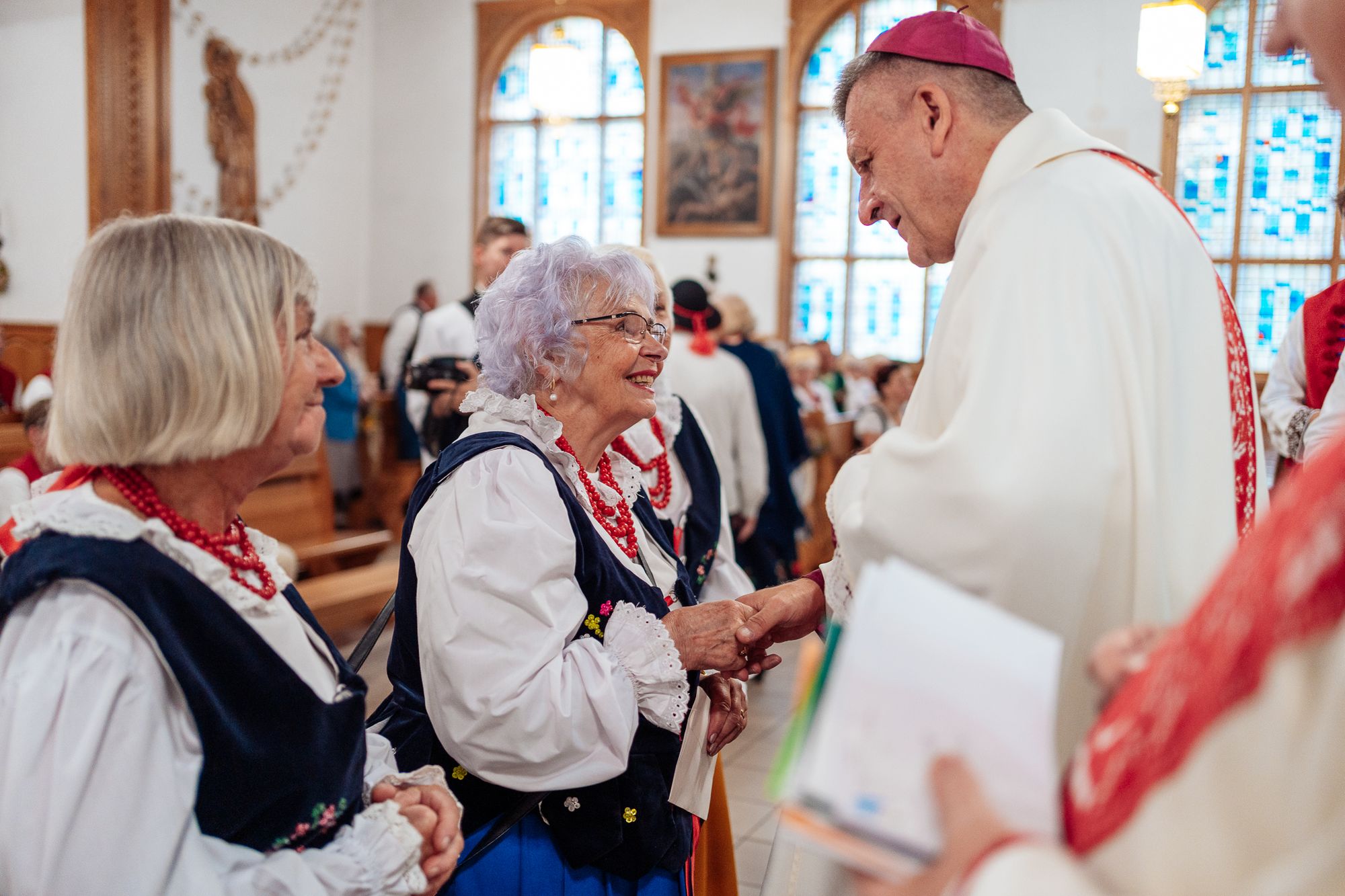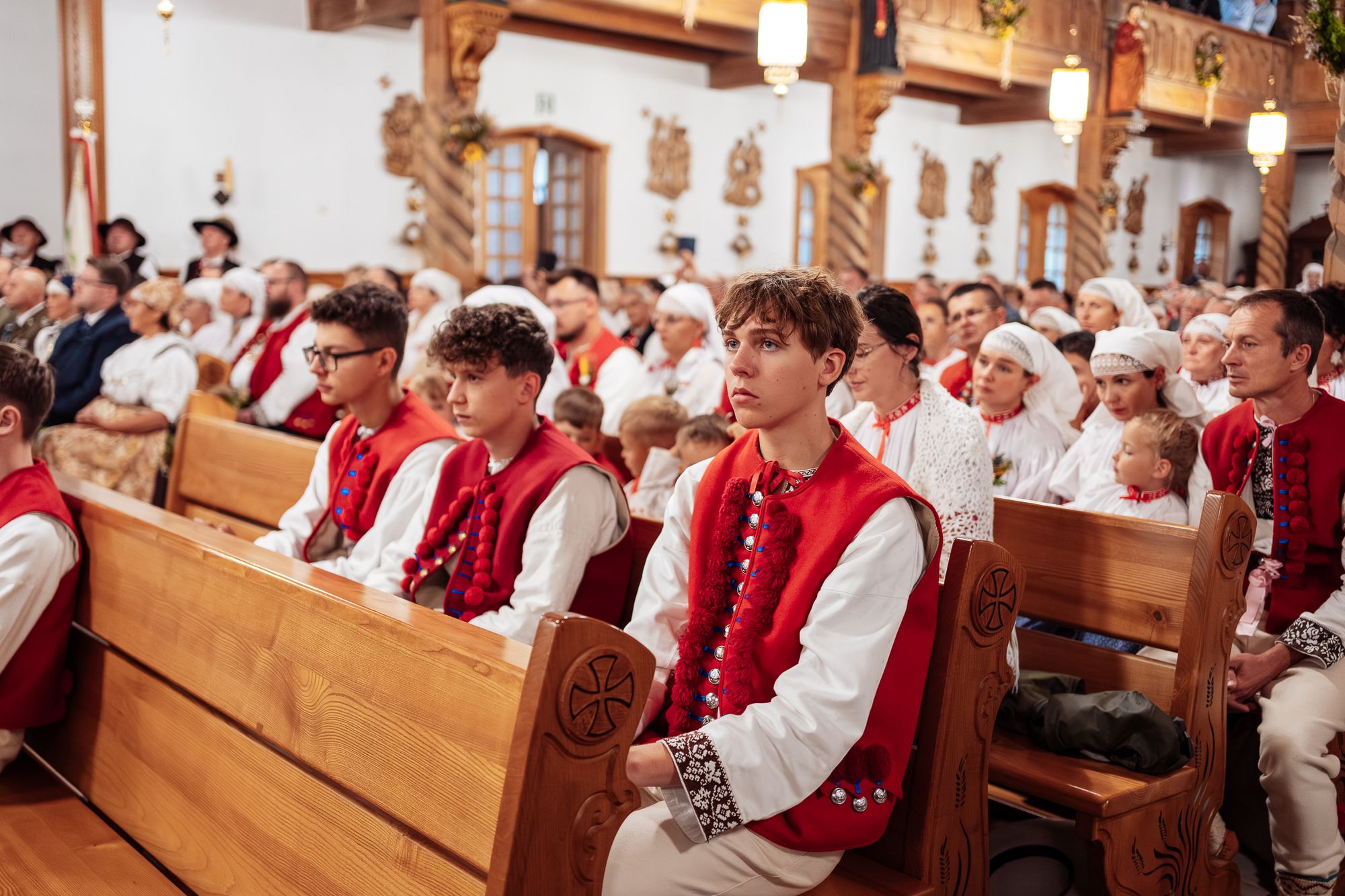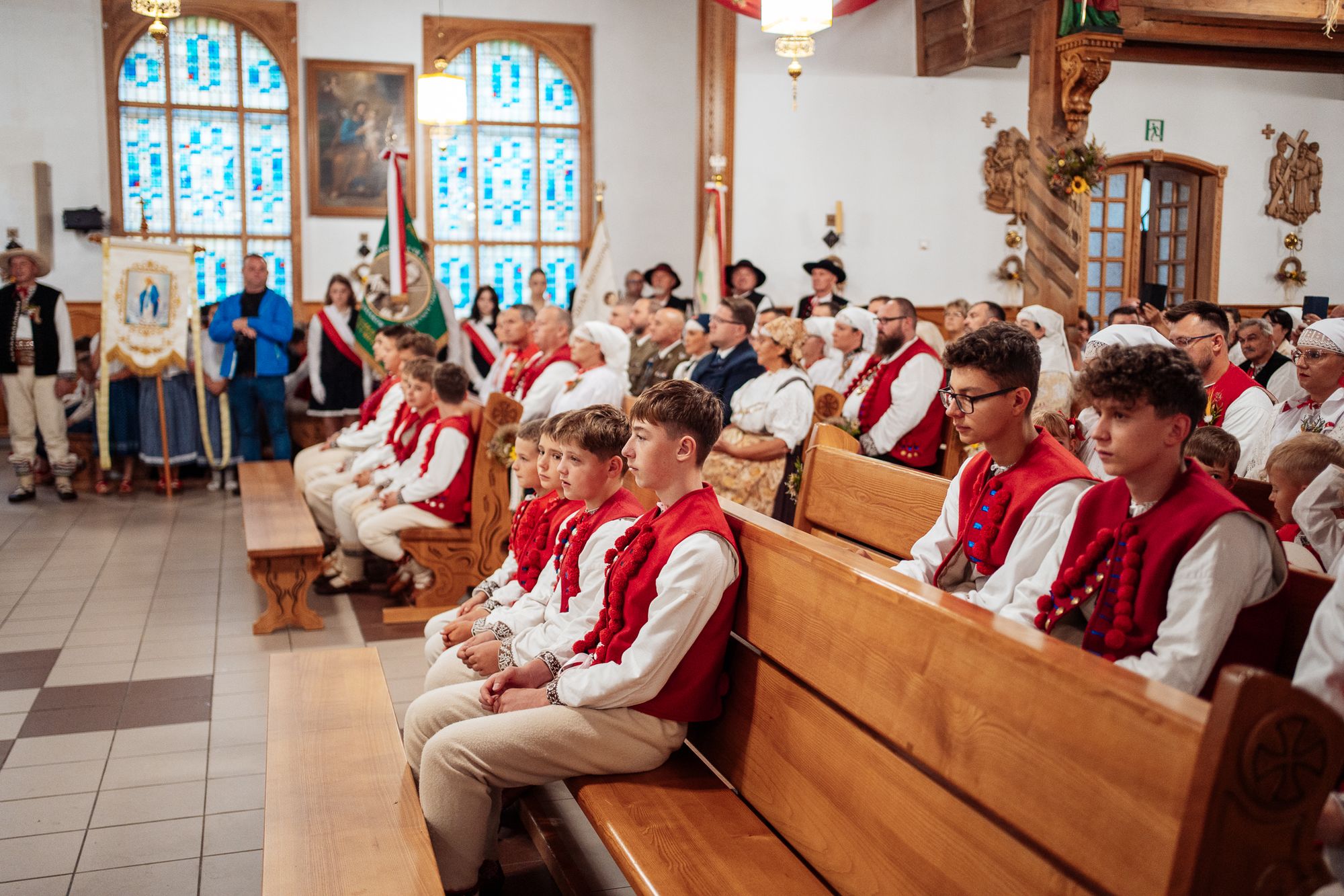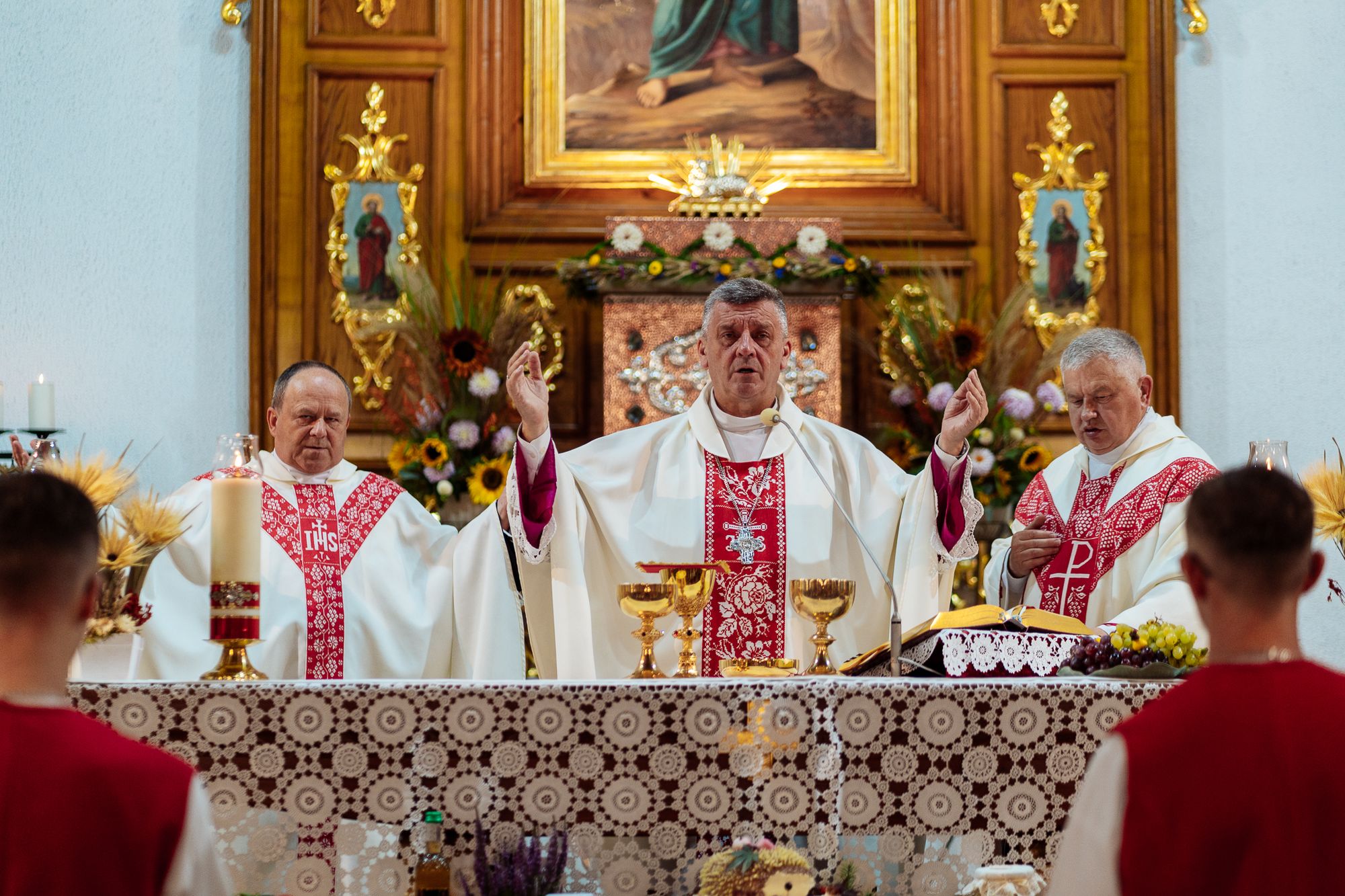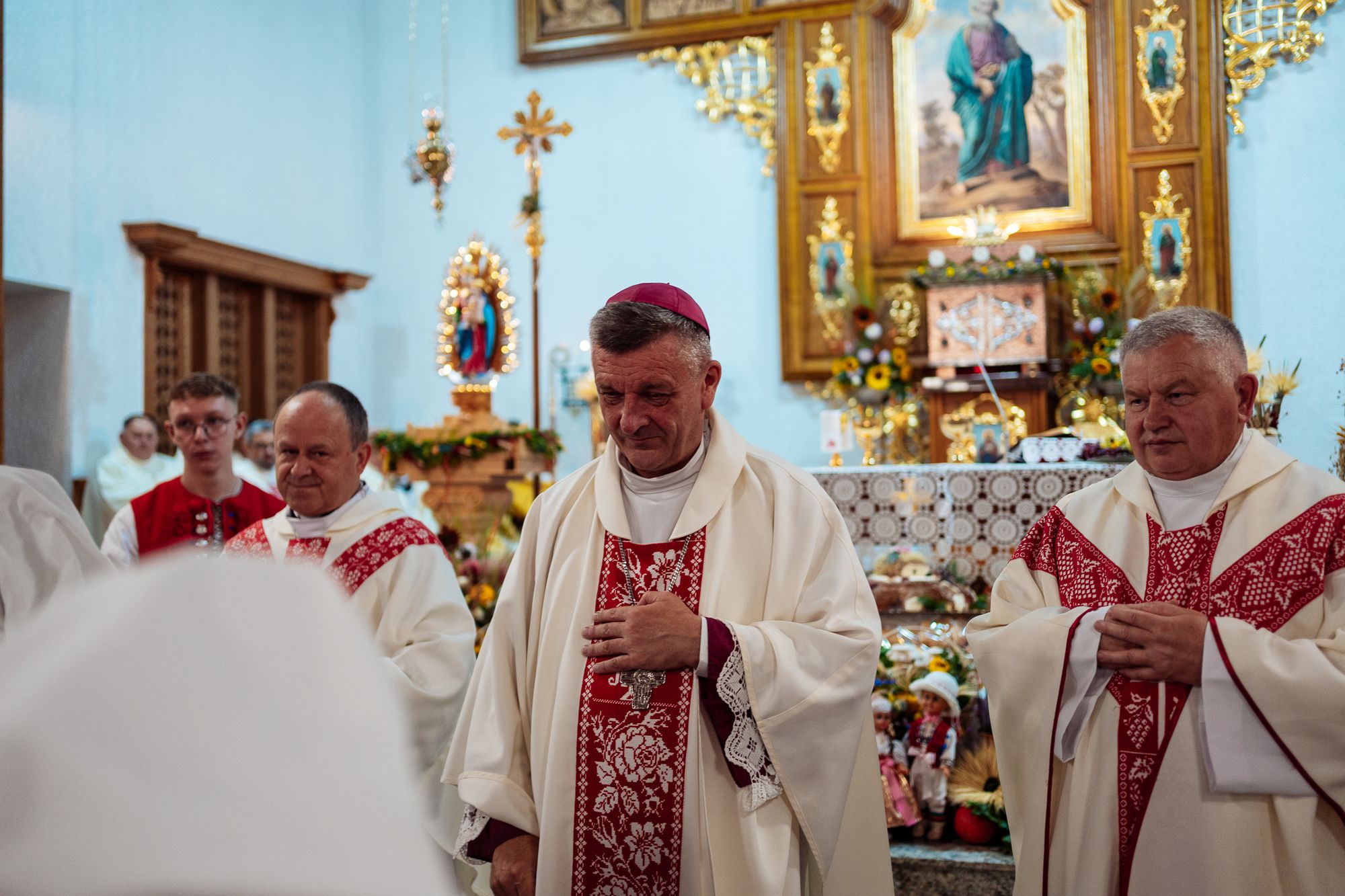 Fotoreportaż przedstawiający uroczystą Eucharystię pod przewodnictwem bp. Romana Pindla w Kościele św. Bartłomieja w Koniakowie