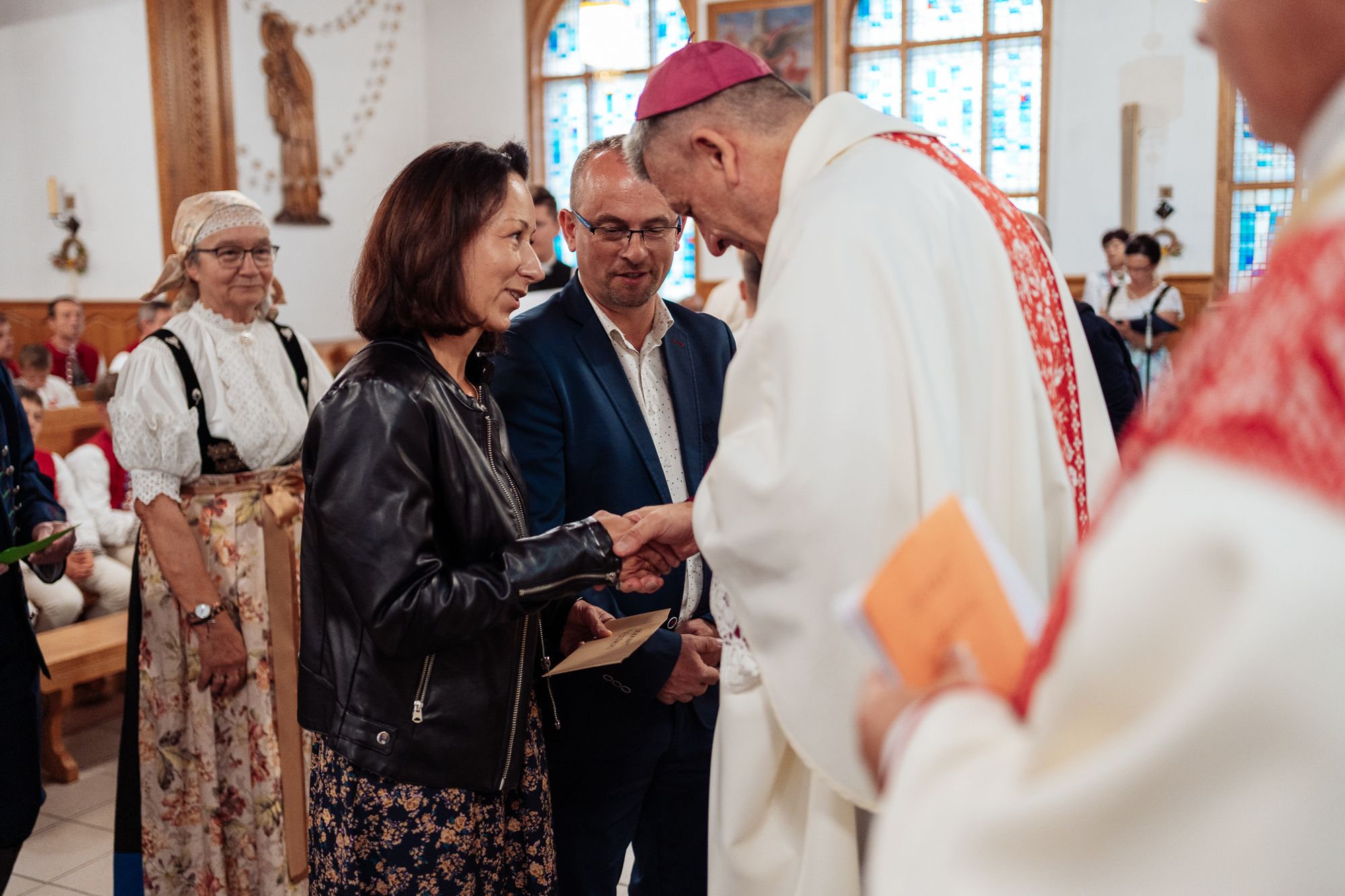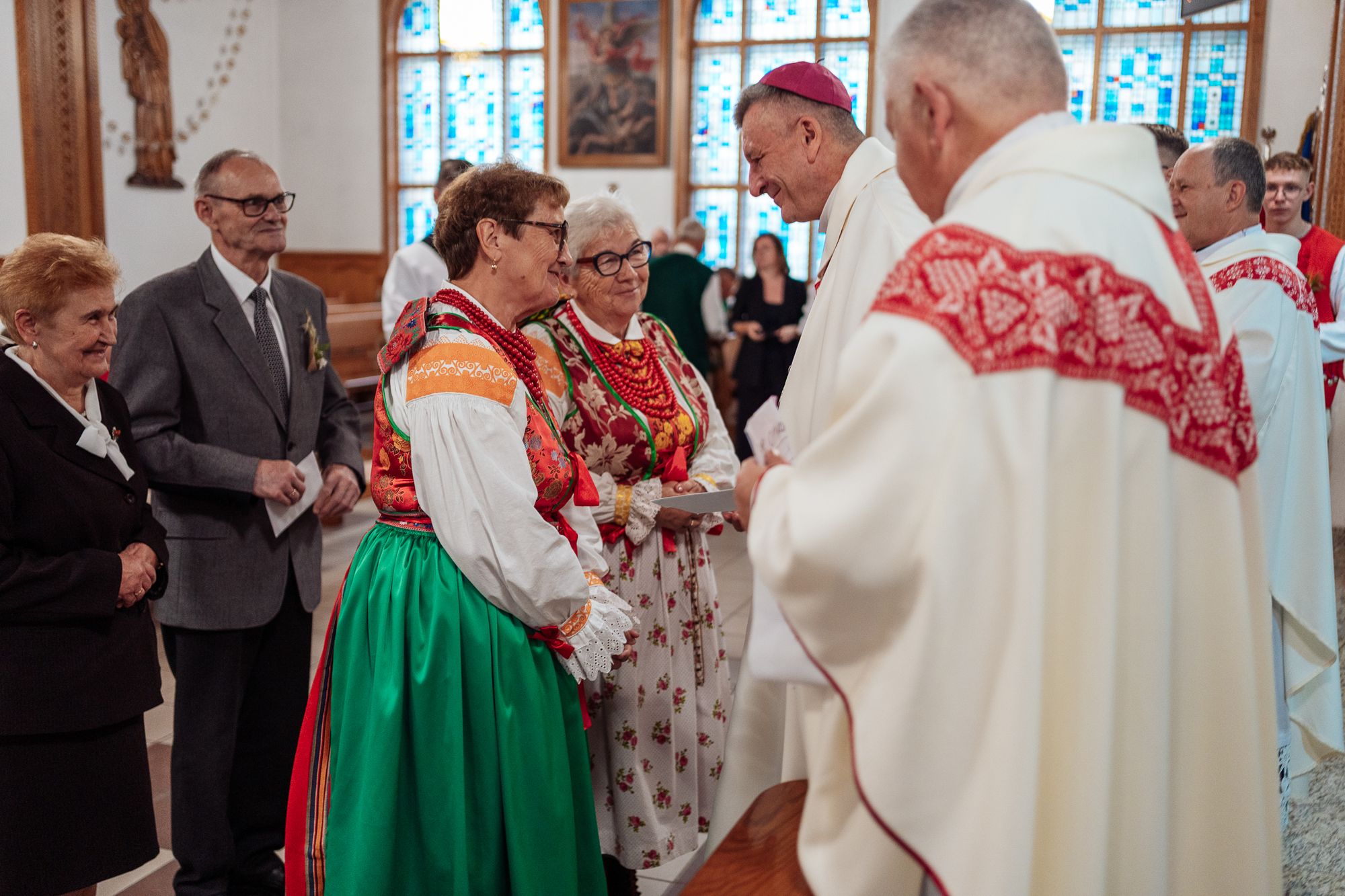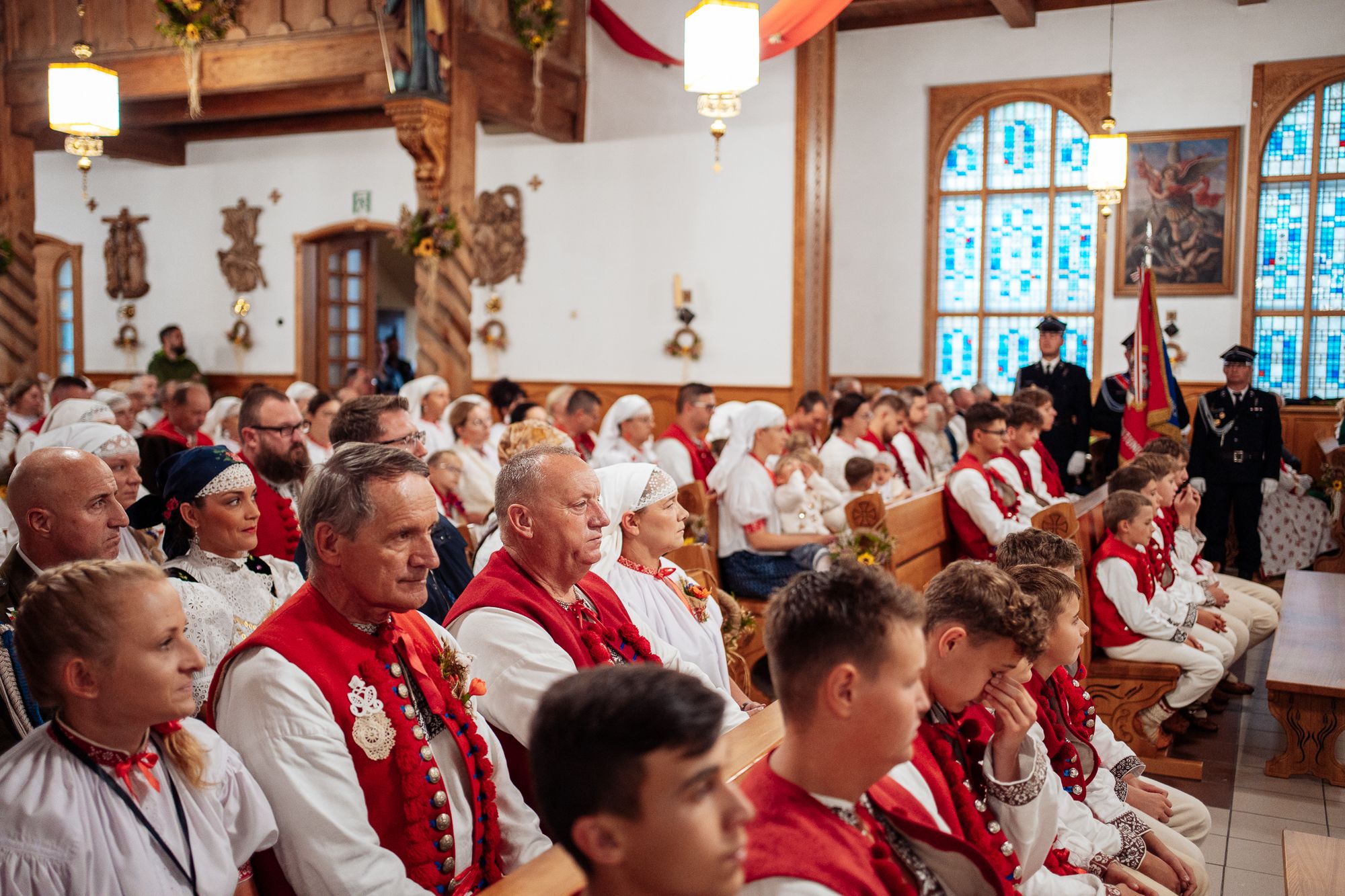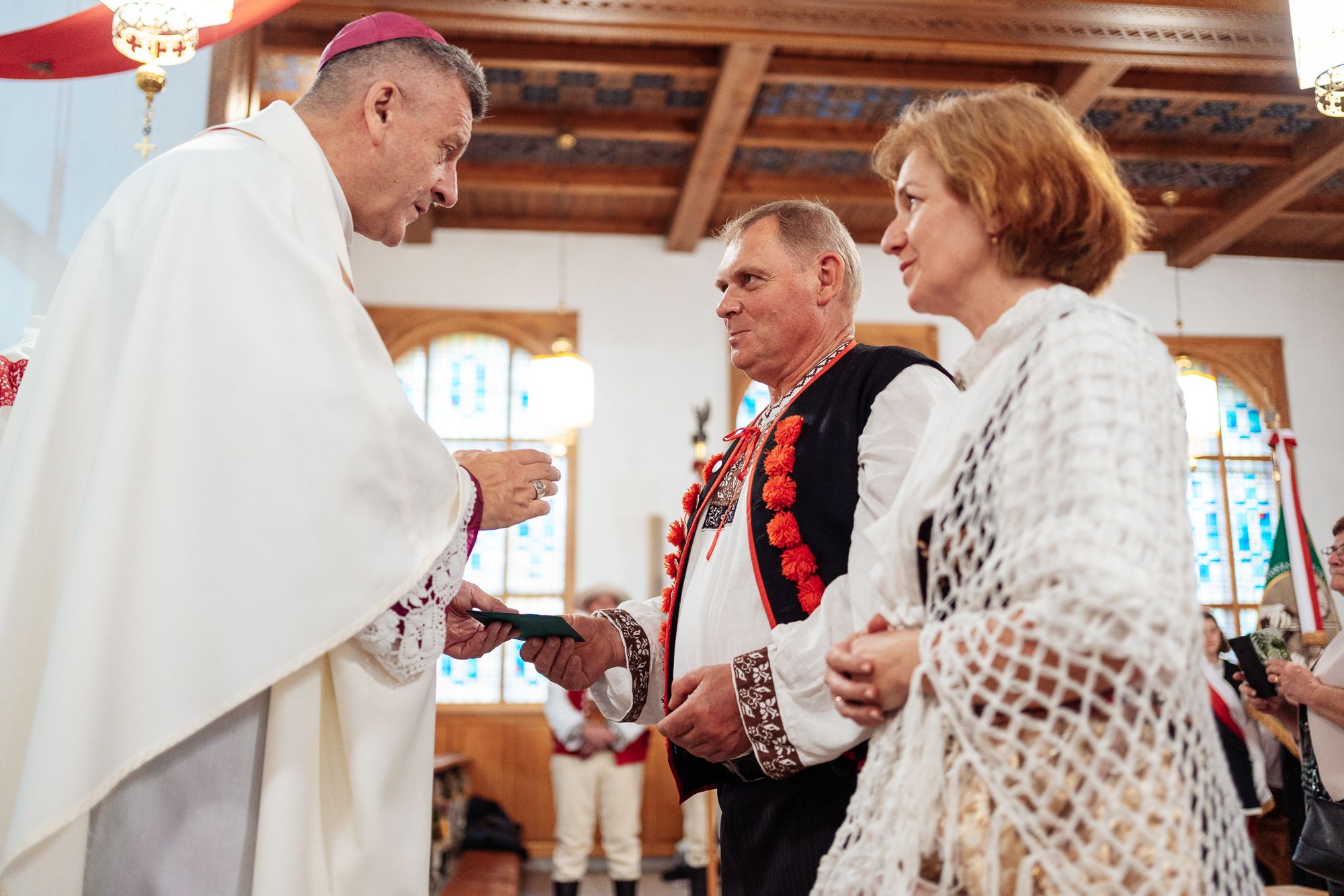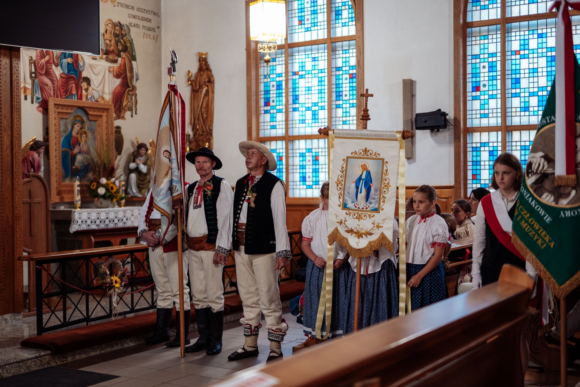 Fotoreportaż przedstawiający uroczystą Eucharystię pod przewodnictwem bp. Romana Pindla w Kościele św. Bartłomieja w Koniakowie