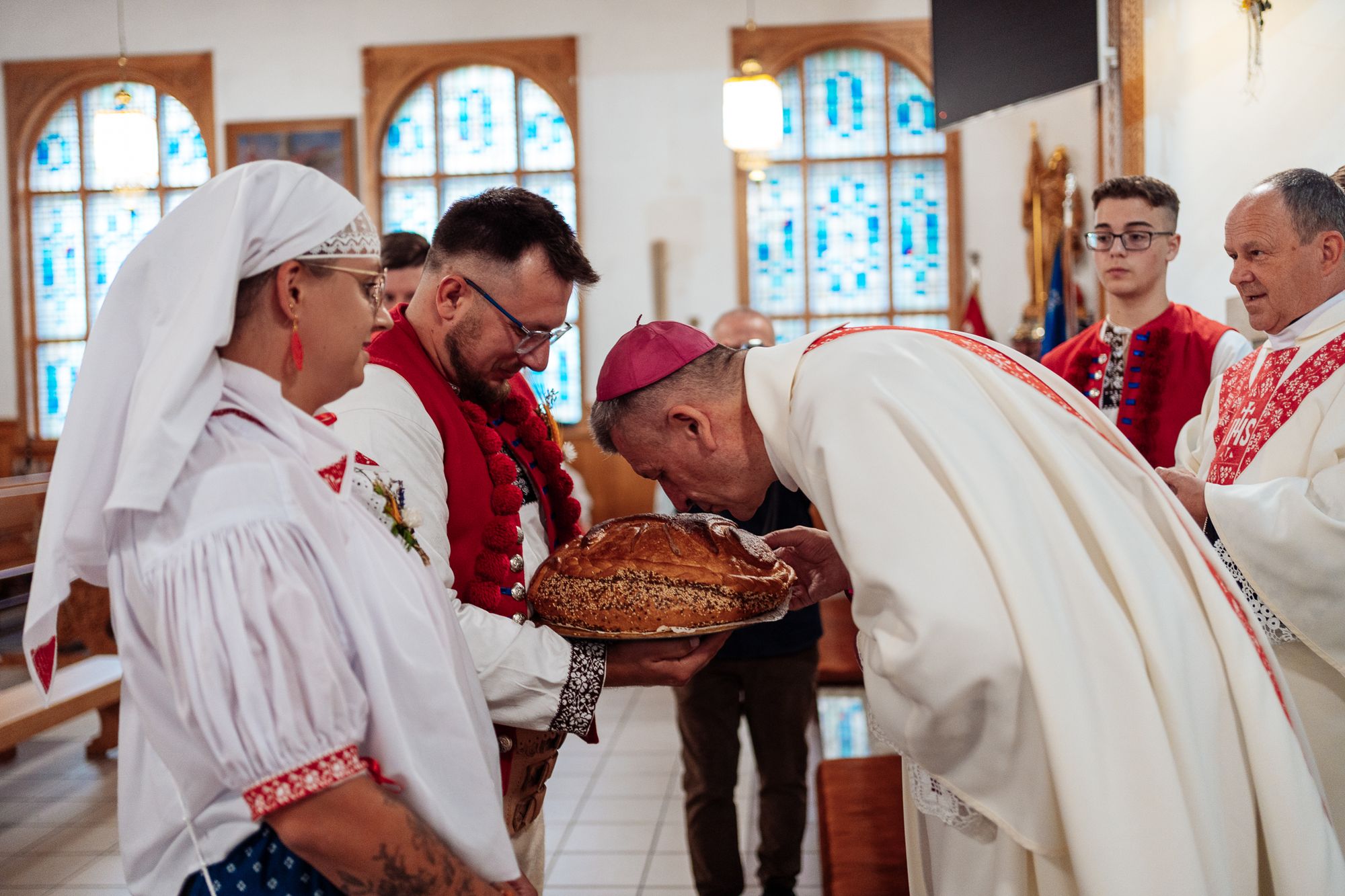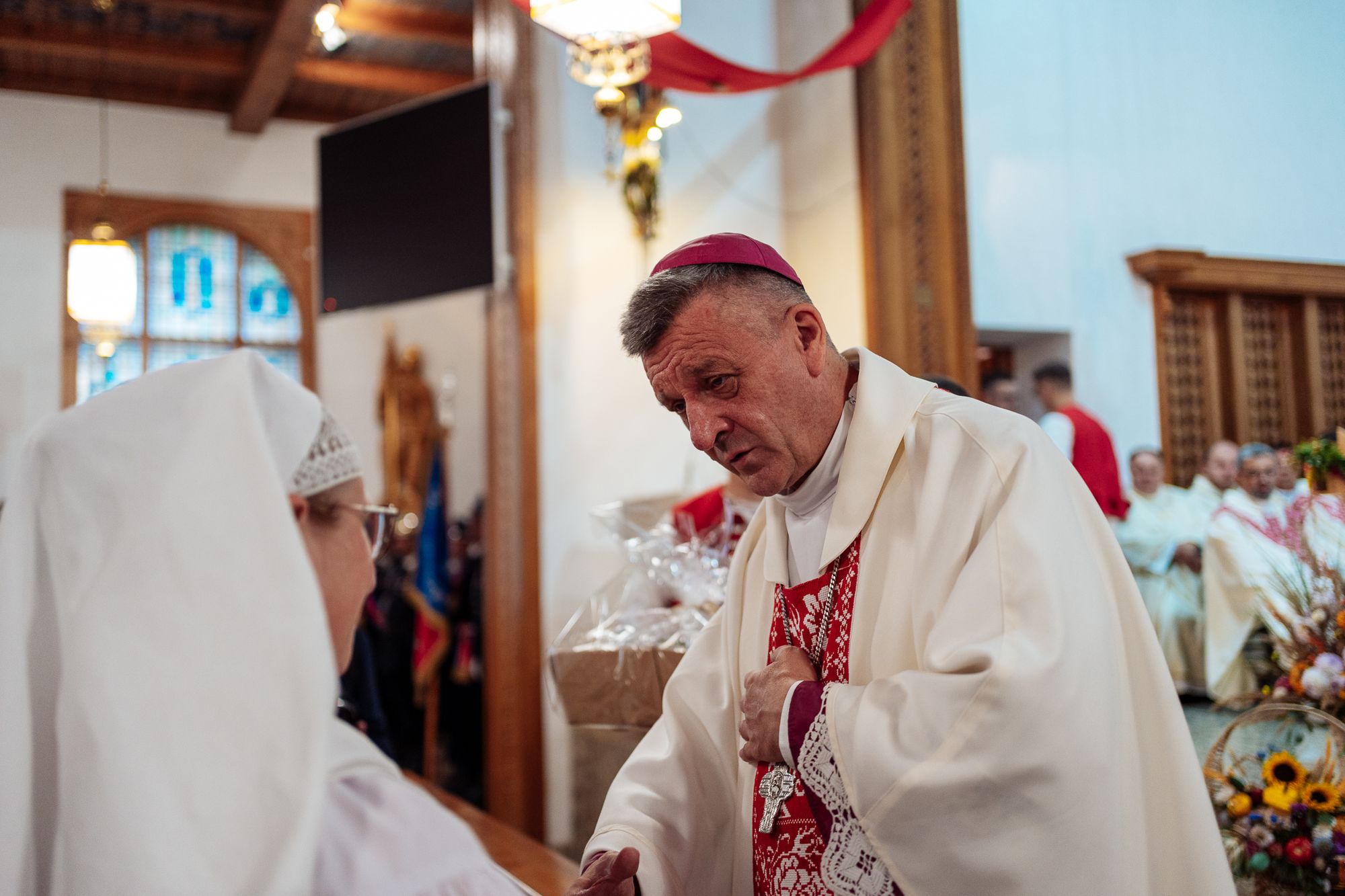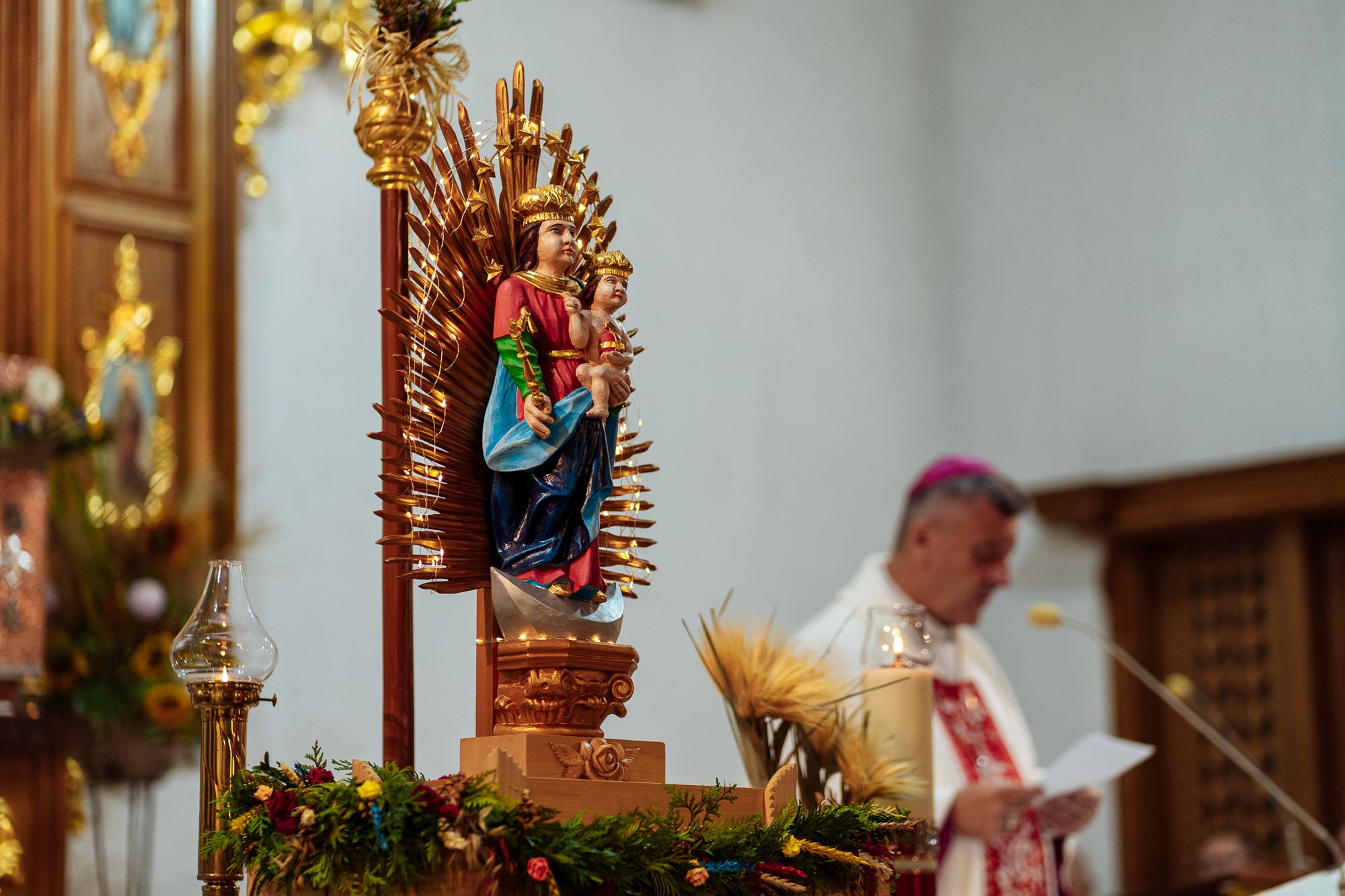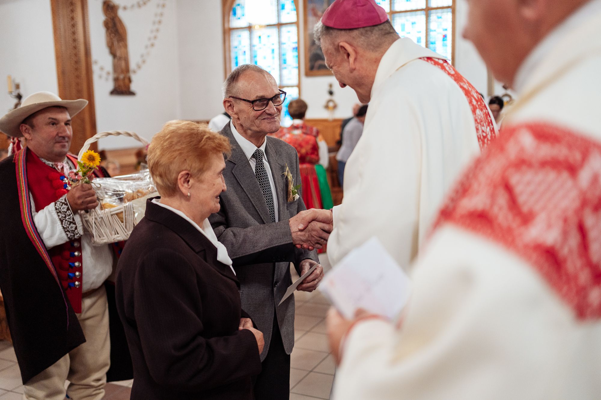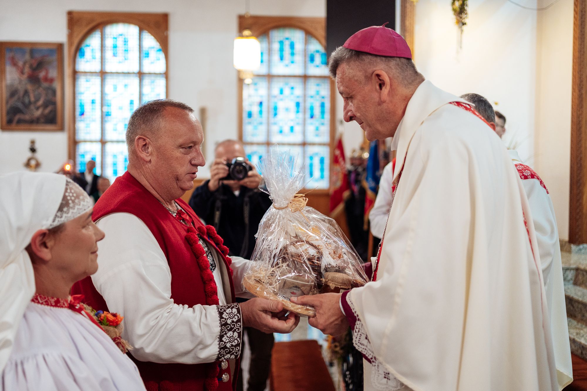 Fotoreportaż przedstawiający uroczystą Eucharystię pod przewodnictwem bp. Romana Pindla w Kościele św. Bartłomieja w Koniakowie