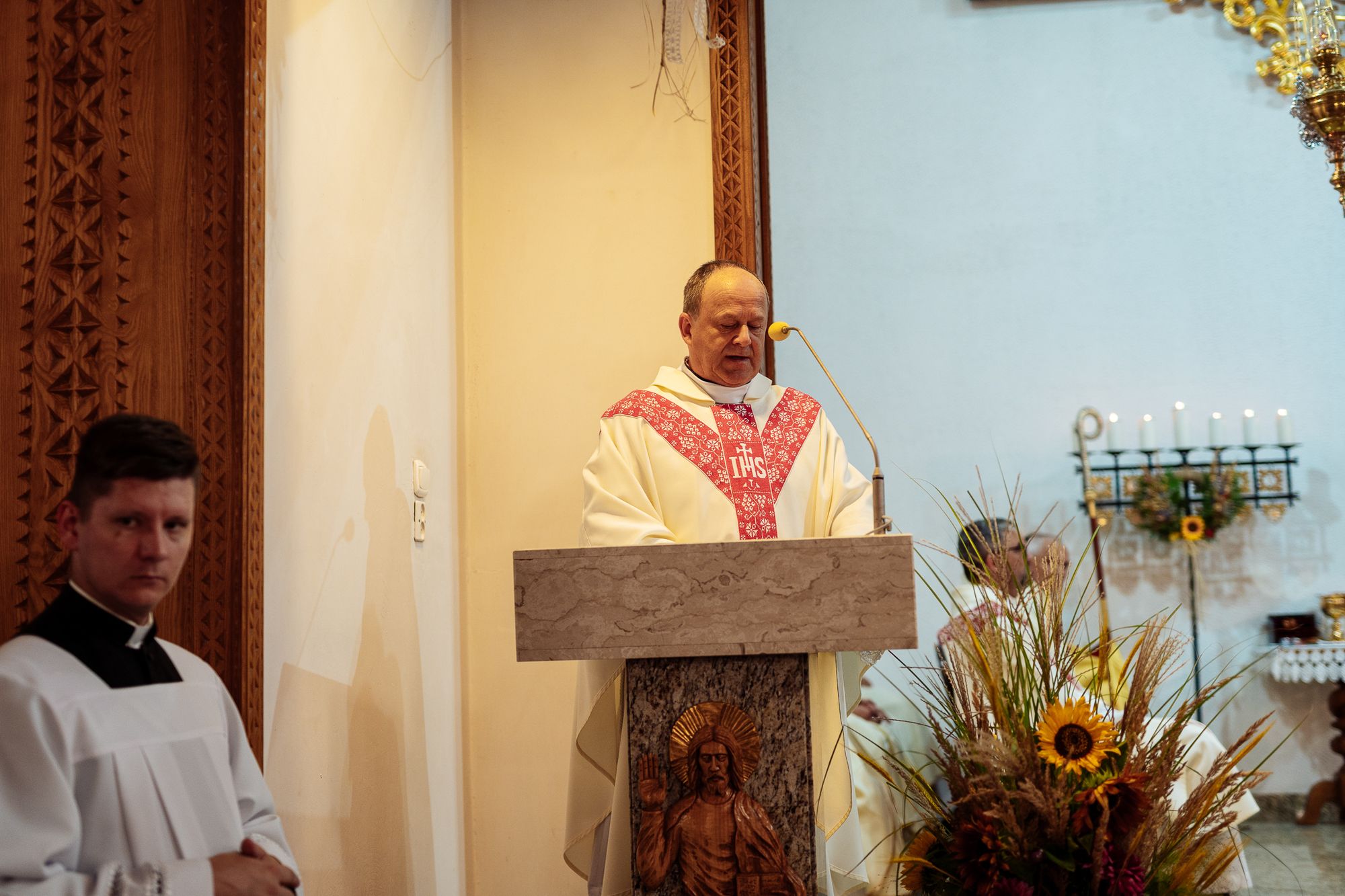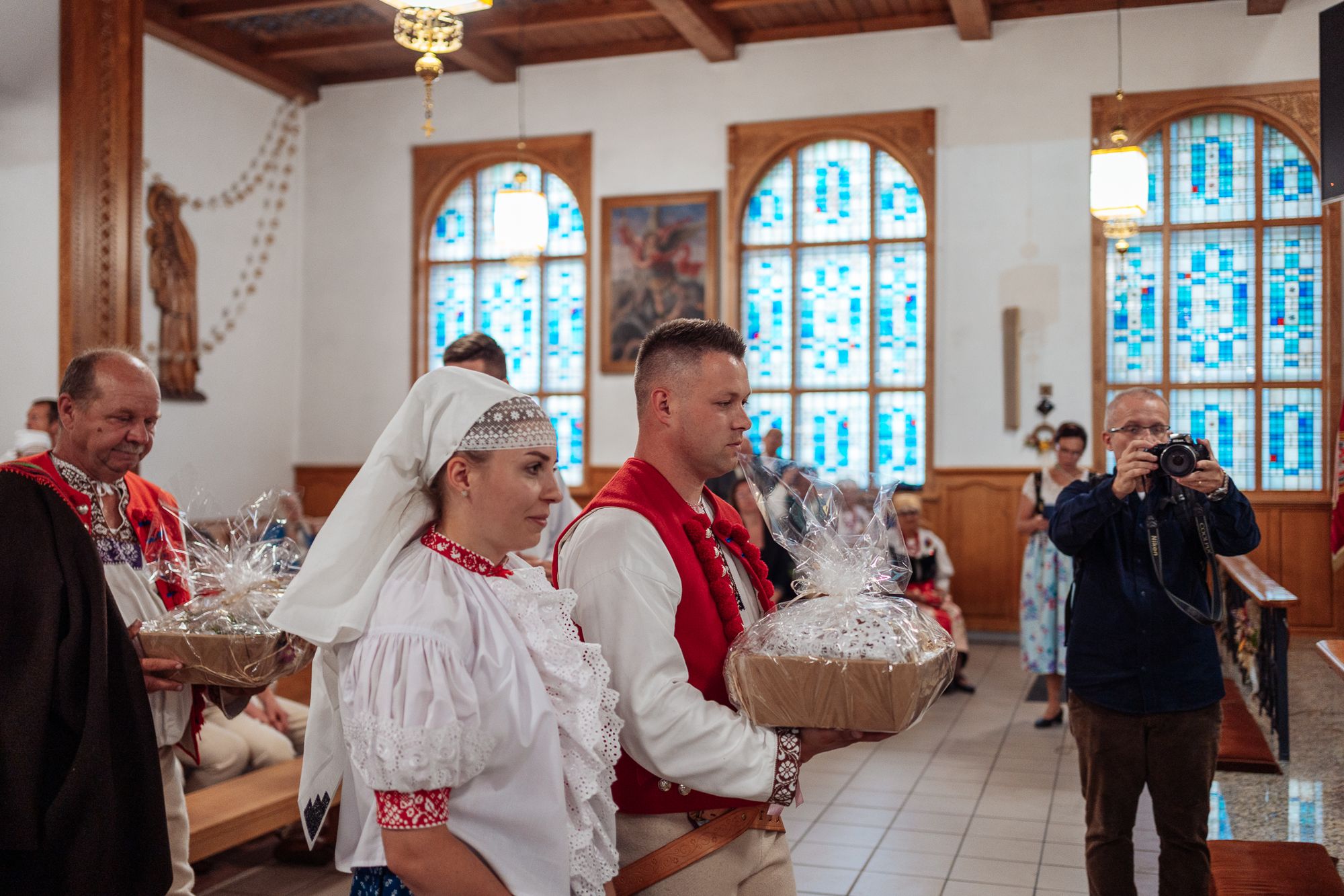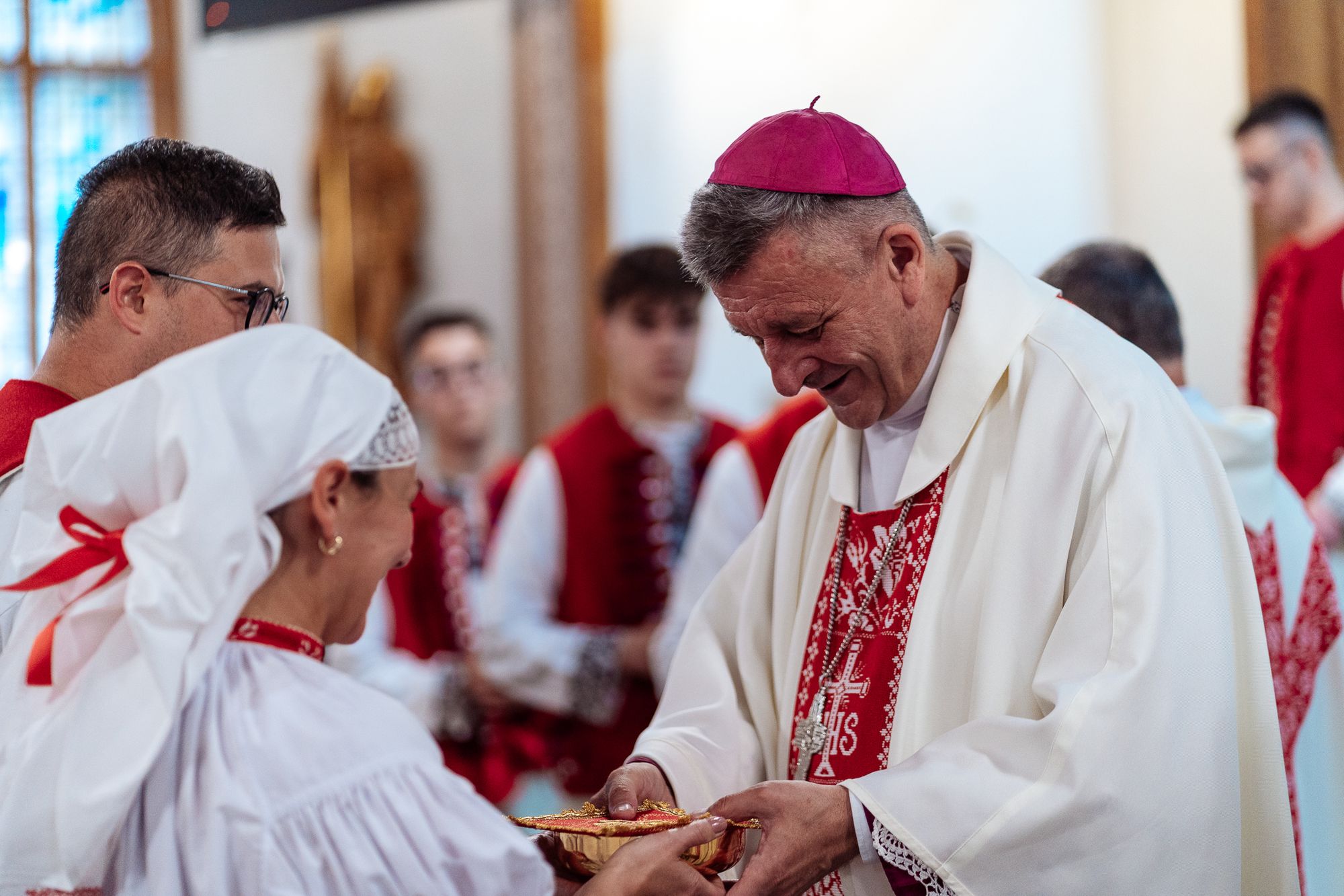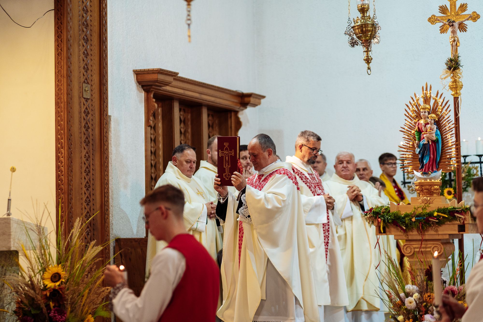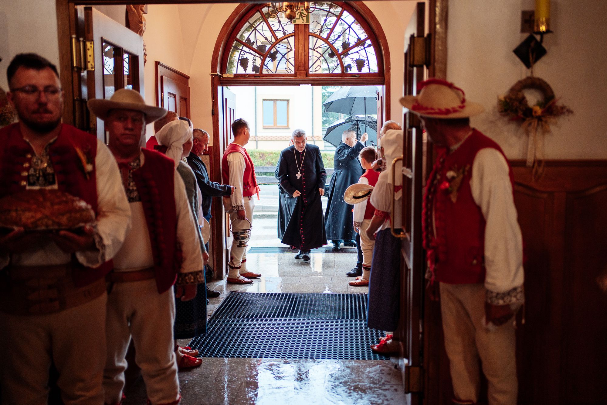Fotoreportaż przedstawiający uroczystą Eucharystię pod przewodnictwem bp. Romana Pindla w Kościele św. Bartłomieja w Koniakowie