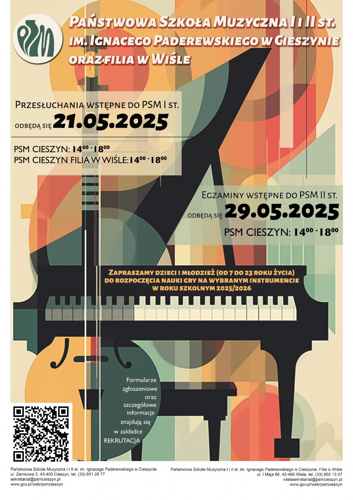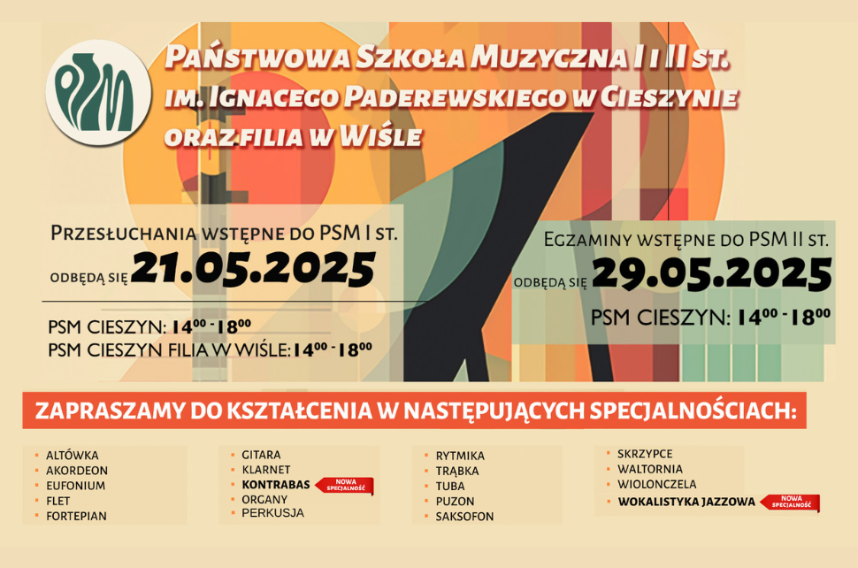 Rekrutacja do Państwowej Szkoły Muzycznej I i II st. w Cieszynie oraz Filii w Wiśle