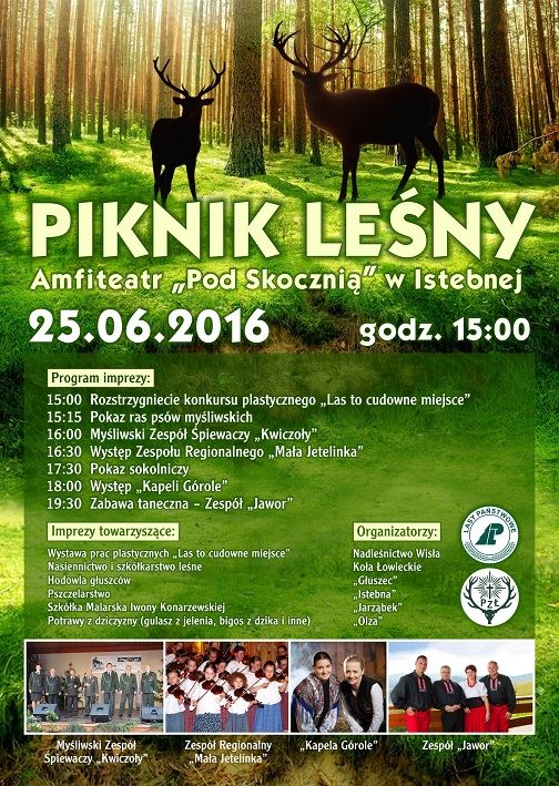 Nadleśnictwo Wisła oraz Koła Łowieckie zapraszają 25.06.2016 r. o godzinie 15.00 do Amfiteatru „Pod Skocznią „ na kolejny już Piknik Leśny.