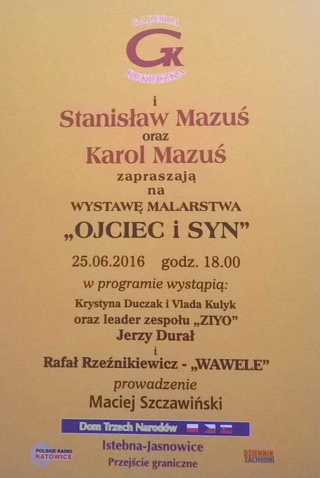 Wernisaż wystawy malarstwa Stanisława Mazusia i Karola Mazusia pt. "Ojciec i syn" - Galeria Kukuczka, Istebna Jasnowice; godz. 18:00;