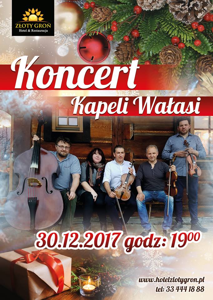 Hotel & Restauracja Złoty Groń zaprasza na świąteczny Koncert Kapeli "Wałasi". Początek o godzinie 19.00. Wstęp wolny! Zapraszamy do rezerwacji stolików.