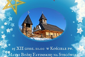 25 grudnia godzina 10.00 w Kościele pw. Matki Bożej Fatimskiej na Stecówce