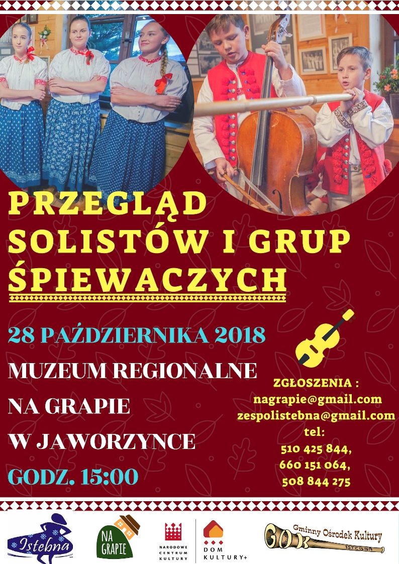 W niedzielę 28 października o godz. 15:00 zapraszamy na przegląd solistów i grup śpiewaczych!